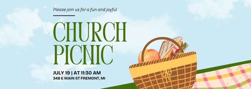 Please join us for our 1st Annual Church Family Picnic on July 19 after regular church service! We will enjoy picnic cuisine, bask in the warm summer weather, and play some outdoor games with the kids. More details coming soon! Hope to see you there!