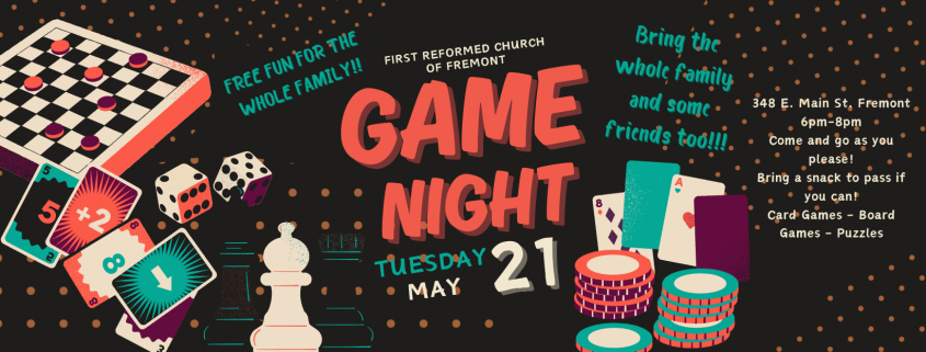 We are hosting our monthly FRC Game Night! This event is free and fun for all ages, so bring the whole family and some friends to play games and put puzzles together! If you’re able to, please bring a snack to share (games are provided). This is a come-and-go style, so if you can’t make it right at 6 or need to leave early, no worries, come as you are able! Game Night will be the third Tuesday of each month, with a possible different schedule for the summer.
